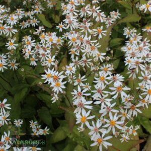 Haraline aster (Aster divaricatus) on hilissuvest sügiseni õitsev 60 cm kõrguse ja läbimõõduga puhmastaim. Talle on iseloomulik lehekuju muutus taime eri osades: alumised lehed on südajad, varre ülemises osas munajad. Väikesed valgete keelõite ja kollaste putkõitega õisikud on koonunud umbes 10 cm suurustesse pööristesse.