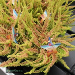 kõrgune kompaktne, tumeroosa lehestikuga, täidisjad õied puhkedes heleroosad, värvuvad hiljem karmiinpunasteks; ’Anthony Dawis’ – kuni 45 cm kõrgune atraktiivne põõsas hõbehallide lehtedega ja valgete õitega, VII-VIII ; ’Argentea’ – madala ja laiuva kasvuga ning erkrohelise lehestiku ja violetsete õitega; põõsastel võrsete tipud värvuvad talveks valkjateks; ’August Beauty’ – kuni 30 cm kõrgune valgeõieline sort, VIII-IX; ’Aurea’ – laiuv, 30…40 cm kõrgune, lehed suvel kuldkollase värvusega, talvel pruunikaspunased, õied helevioletjad kuid mitte väga dekoratiivsed; VIII-X; ’Battle of Arnhem’ – umbes 60 cm kõrgune tumerohelise,talvel pronksja lehestiku ja hele purpurpunaste õitega hiljaõitsev sort, IX-X; ’Beechwood Crimson’ – püstise kasvga ja tumerohelise lehestikuga, õied tume-karmiinjad, sordi ’C. W. Nix’ parandatud versioon; ’Boskoop’ – umbes 30 cm kõrgune, lehestik suvel säravalt kuldkollane, talvel oranžpunakas, õied sirelilillad, VII-VIII; ’Carmen’ – 30…40 cm kõrgune laiuva, püstise kasvuga tumerohelise lehestiku ja roosakasvioletsete õitega, VIII-IX; ’Christiana’ – 1970, Rijnbeek; kuni 50 cm kõrgune tiheda, püstise kasvuga sort; lehestik kollakasroheline, talvel kollane, õied valged, IX-X; ’Dark Beauty’ – kompaktse kasvuga kuni 30 cm kõrgune helerohelise lehestiku ja pooltäidisjate, säravpunaste õitega sort, IX-X; ’Darkness’ – tiheda, püstise kuni 30 cm kõrguse kasvuga ja karmiinpurpurjate