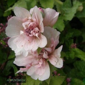 Roos-kassinaeris (M. alcea) on 50…80 cm kõrgune puhmastaim. Varre ülaosa ja õierood on tähtkarvased, ülemised lehed 3…5 osalised, hõlmade servad hambulised või veidi lõhised. Juurmised lehed on sõrmjagused või sõrmlõhised. Armastab sooja kasvukohta. Ta õitseb juunist augustini suurte (5-7cm läbimõõduga) roosade õitega, mis paiknevad lehtede kaenaldes. Seemned on kaetud lühikeste karvakestega või paljad. Temast aretatud sortide õied varieeruvad kreemikast tumeroosani, õie läbimõõt on veelgi suurem ja ka kõrgus küünib pooleteise meetrini. Sortidest tuntum: ’Fastigiata’ – püstine, kuni sügiskülmadeni õitsev kasvatamist vääriv roosaõieline sort.