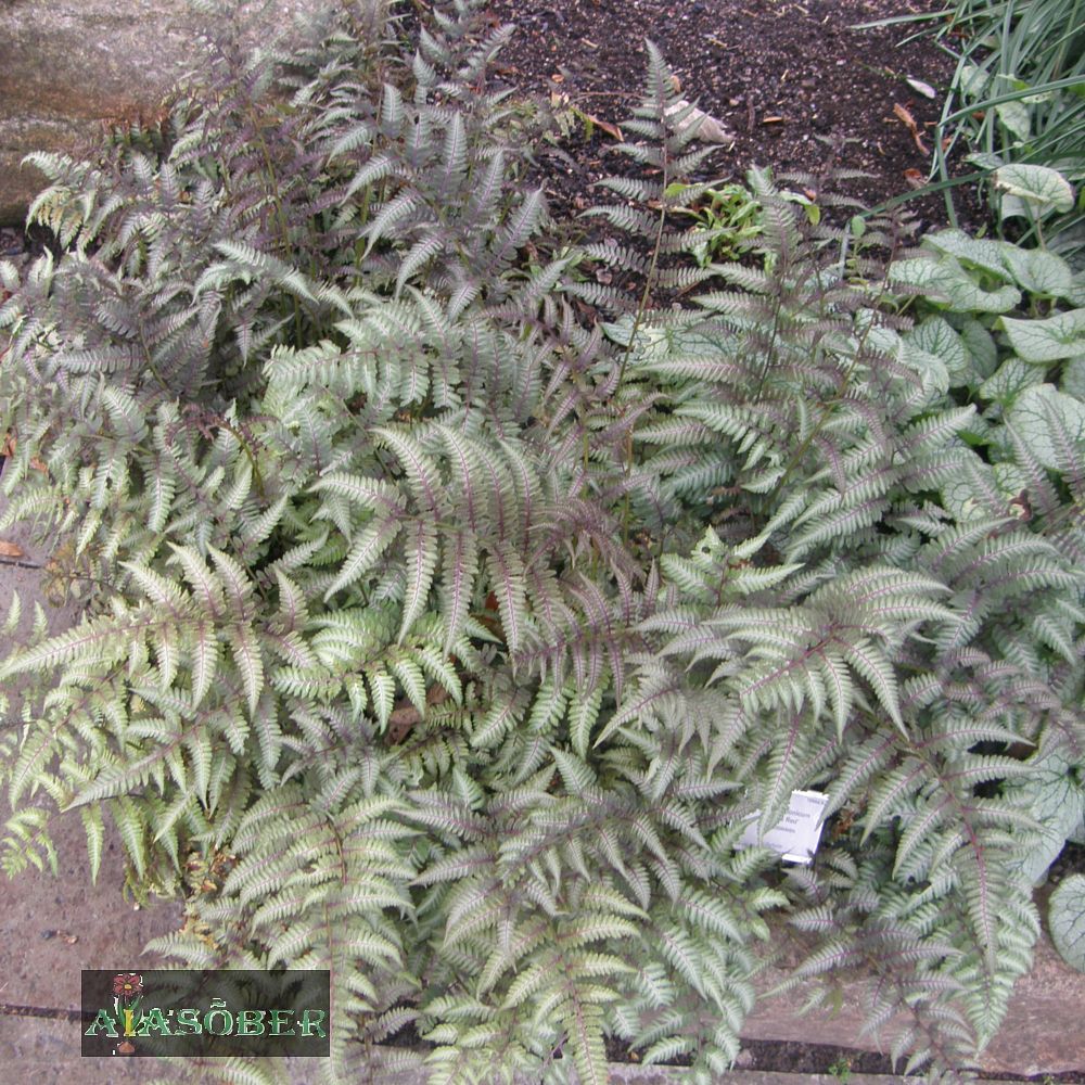sõkalsoomustega, lehelaba on kahelisulgjas, tipust sulghõlmine kuni -jagune. Esimest järku sulglehekesed paiknevad hõredalt ja on rootsukesega! Eoskuhjad on piklikud, paiknevad valdavalt paralleelselt tihedalt kokkusurutult ja kaetud enam-vähem poolkuukujulise looriga. Eosed valmivad septembris. Tuntuim sort ‘Metallicum‘ on kuni 40 cm kõrge ja tumelillakaspunaste leherootsuga ning rohelise-hõbehallikirjude sulglehekestega. Kasvuks eelistab poolvarjulist küllaltki valget kasvukohta (varjus ei tule värviküllus nii esile ja täispäike kõrvetab!) ning parasniisket kuni niisket happelist huumusrikast pinnast. Meil Eestis veidi külmaõrn, mistõttu vajaks talvekatet. Paljundatakse nagu kõiki sõnajalgu eostega liike, kuid nii liike kui sorte saab paljundada ka jagamise teel.