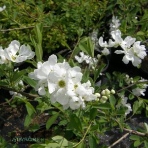 - ‘The Bride’: Madalam ja kompaktsem sort, millel on rippuvad, õiemassiga kaetud oksad.