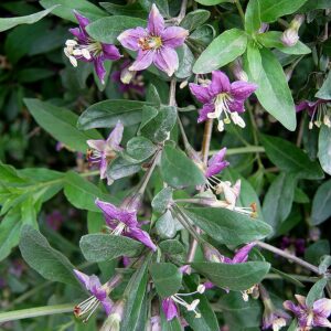 1–2 cm laiad, hallikasrohelised ning asetsevad võrseil vahelduvalt. Violetsed õied paiknevad võrseil 1–5 kaupa lehtede kaenlais. Vili on 1–2 cm pikkune piklik korallpunane mari.