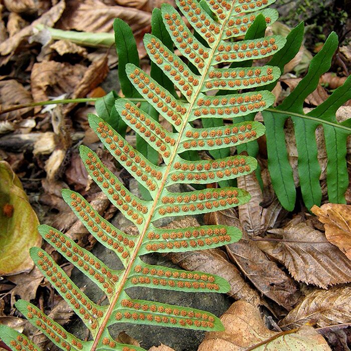 Polystichum neolobatum with rather cool common name ‘Asian Sabre Fern’ has something to live up which I’m happy to say it does. Being one of the best hardy featherey leaved evergreen ferns around, the 60cm long fronds are a deep glossy green with a classic dissected structure. This is a charming fern, easy to grow and lush looking for most of the year best planted in fertile moisture retentive but not waterlogged soils located in dappled shade. We like it for it’s exotic looks and hardy nature. For some strange reason still a hard to find fern rarely available so one for the collectors too.
