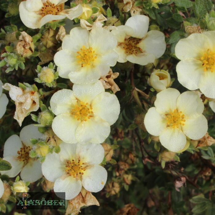 Heitlehine ja rohkesti harunev ühekojaline taim roosõieliste (Rosaceae) sugukonnas. Õied kreemikasvalged suurte kollaste tolmukatega. Õitsemisaeg on väga pikk. Leplik mullastiku suhtes, kuid eelistab lubjakat ja huumusrikast mulda. Sobib soolotaimena või gruppides kasvatamiseks koduaias, parkides ja haljasaladel või madala õitsva hekina. Hekis 3 taime jm, lausistutuse korral 3-5 taime m2-le.