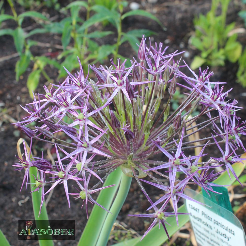 Suured kerakujulised õiepallid, mille läbimõõt võib ulatuda kuni 20 cm-ni, koosnevad pisikestest tähekujulistest roosakaspurpursetest õitest. Tähelepanu püüdvad õisikud tärkavad üle tagasihoidlikumaks jääva lehestiku. Peale õitsemist võib õiepalle kuivseadetes kasutada, need säilitavad kuivades oma pruunid tähekujud. Taim annab ka isekülvi. Laugud eristuvad kõige paremini keskmist kasvu püsikute seas ja õitsevad kohe peale tulpe. Tumedat värvi iiriste ja hõbedalehiste madalamate pinnakattetaimede vahel kõrguvad lillad pallid näivad lausa maagilised.